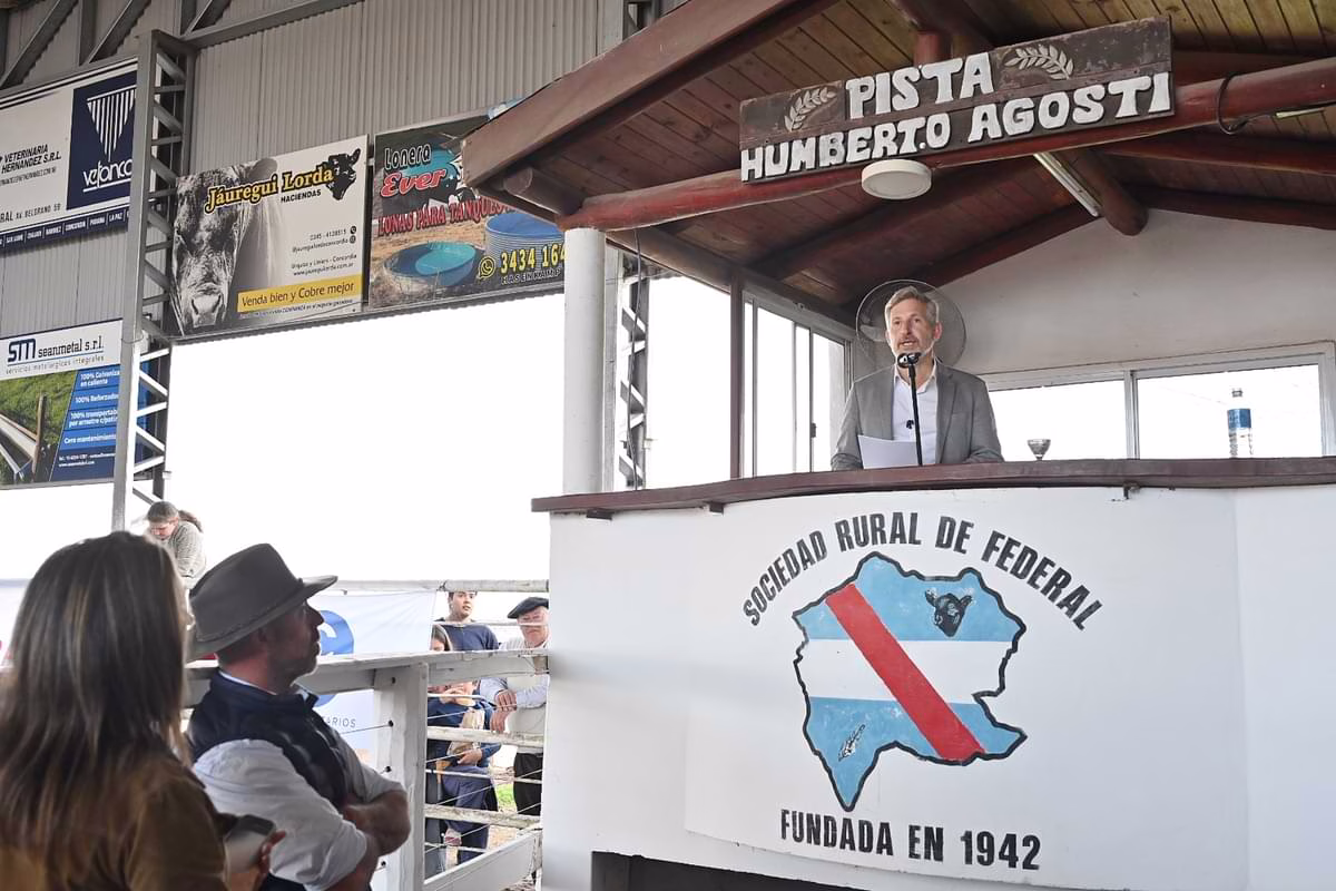 Acompañado por la intendenta Alicia Oviedo; el presidente de la Sociedad Rural de Federal, Matías Alexis Pompar; el presidente de la Sociedad Rural Argentina, Nicolás Pino; el titular de Farer, Nicasio Tito; y el vicepresidente de Confederaciones Rurales Argentinas (CRA), José Colombatto, entre otras autoridades provinciales y del sector; el mandatario afirmó: «El campo, la industria, el comercio y los servicios son la base de nuestro desarrollo».